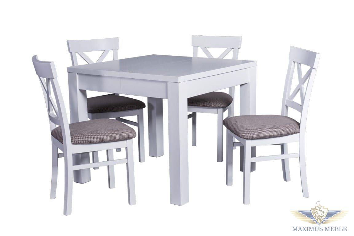 Stół kwadratowy Tony i krzesła tapicerowane Naomi